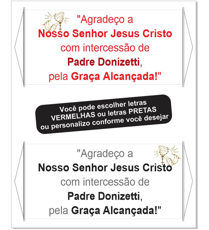 Temos Várias opções e modelos de Santinhos, Orações, Quadros, Promessa, Banner, Faixa e artigos religiosos. Consulte-nos!