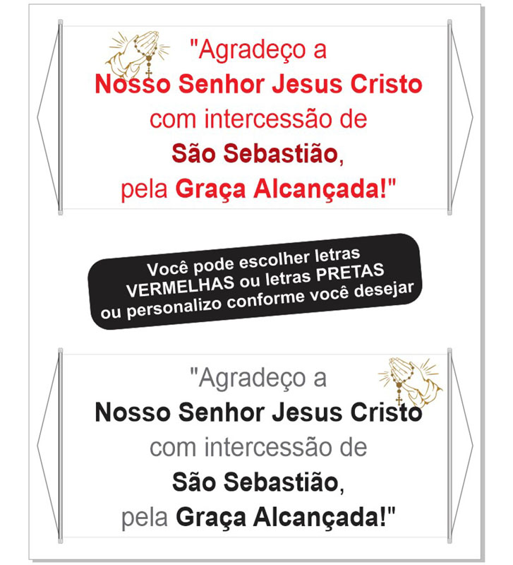 Temos Várias opções e modelos de Santinhos, Orações, Quadros, Promessa, Banner, Faixa e artigos religiosos. Consulte-nos!